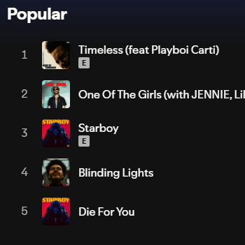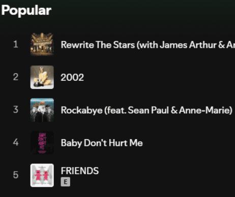 Welcome to the Spotify Popular Songs Artist Recognition Challenge! This quiz will show you screenshots of the top five most popular songs of an artist on Spotify. Your task is to guess which singer these songs belong to. Only true music lovers familiar with current hits can ace this quiz. Test your music knowledge and see how many stars you can recognize!